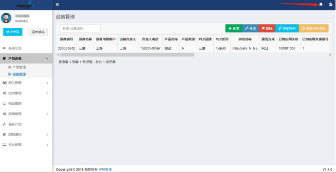 7.新增设备:选择设备管理点击【新增】,填写设备信息,如下图所示